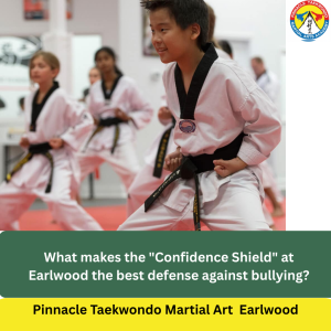 The Pinnacle Solution: The Confidence Shield At Pinnacle Taekwondo Earlwood, we teach that self-defence is 90% mental. We empower students with the “Confidence Shield“—a combination of assertive body language, steady eye contact, and vocal authority. By knowing they have the physical skills to defend themselves, the “victim” body language disappears, and children naturally project a presence that deters conflict before it starts.
